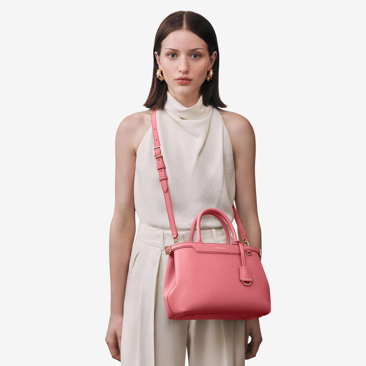 MAISON de SABRÉの8年間のクラフトマンシップを称えるフラッグシップモデル、ミディアムパレス。バターのように柔らかなカーフレザーで仕立てられたバッグは、使い込むほどに柔らかさを増す流れるようなシルエット。 9つのアイコニックなブランドコードを体現した、調整可能なレザーベルト、ブリッジクリップ、ロールハンドル、取り外し可能なクロスボディストラップ、そしてアクセントカラーのナチュラルスエードライニングを特徴としたサイドライン。 iPhone Pro Max、ポーチ、ウォーターボトル、日常の必需品を収納可能で、形を崩さずスマートな持ち運びを実現。SABRÉMOJI™チャームリンクにより、チャームやアクセサリーで自由にパーソナライズ可能。 ラージパレスのコンパクトモデルとして、洗練された佇まいであらゆるスタイルを一層格上げ。