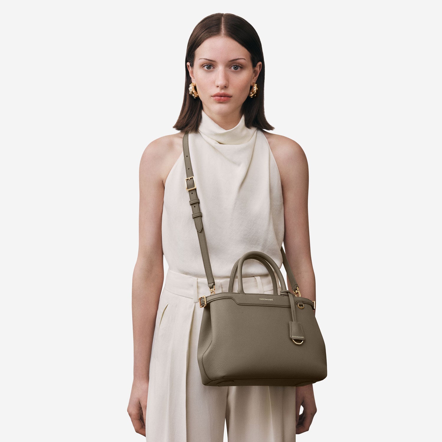 MAISON de SABRÉの8年間のクラフトマンシップを称えるフラッグシップモデル、ミディアムパレス。バターのように柔らかなカーフレザーで仕立てられたバッグは、使い込むほどに柔らかさを増す流れるようなシルエット。 9つのアイコニックなブランドコードを体現した、調整可能なレザーベルト、ブリッジクリップ、ロールハンドル、取り外し可能なクロスボディストラップ、そしてアクセントカラーのナチュラルスエードライニングを特徴としたサイドライン。 iPhone Pro Max、ポーチ、ウォーターボトル、日常の必需品を収納可能で、形を崩さずスマートな持ち運びを実現。SABRÉMOJI™チャームリンクにより、チャームやアクセサリーで自由にパーソナライズ可能。 ラージパレスのコンパクトモデルとして、洗練された佇まいであらゆるスタイルを一層格上げ。