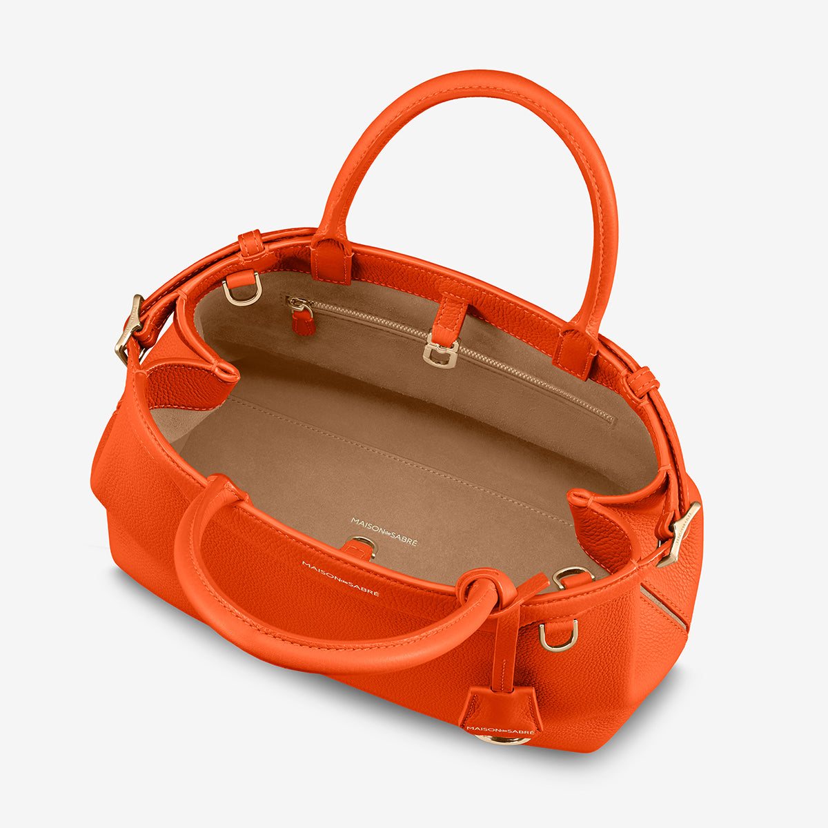 MAISON de SABRÉの8年間のクラフトマンシップを称えるフラッグシップモデル、ミディアムパレス。バターのように柔らかなカーフレザーで仕立てられたバッグは、使い込むほどに柔らかさを増す流れるようなシルエット。 9つのアイコニックなブランドコードを体現した、調整可能なレザーベルト、ブリッジクリップ、ロールハンドル、取り外し可能なクロスボディストラップ、そしてアクセントカラーのナチュラルスエードライニングを特徴としたサイドライン。 iPhone Pro Max、ポーチ、ウォーターボトル、日常の必需品を収納可能で、形を崩さずスマートな持ち運びを実現。SABRÉMOJI™チャームリンクにより、チャームやアクセサリーで自由にパーソナライズ可能。 ラージパレスのコンパクトモデルとして、洗練された佇まいであらゆるスタイルを一層格上げ。