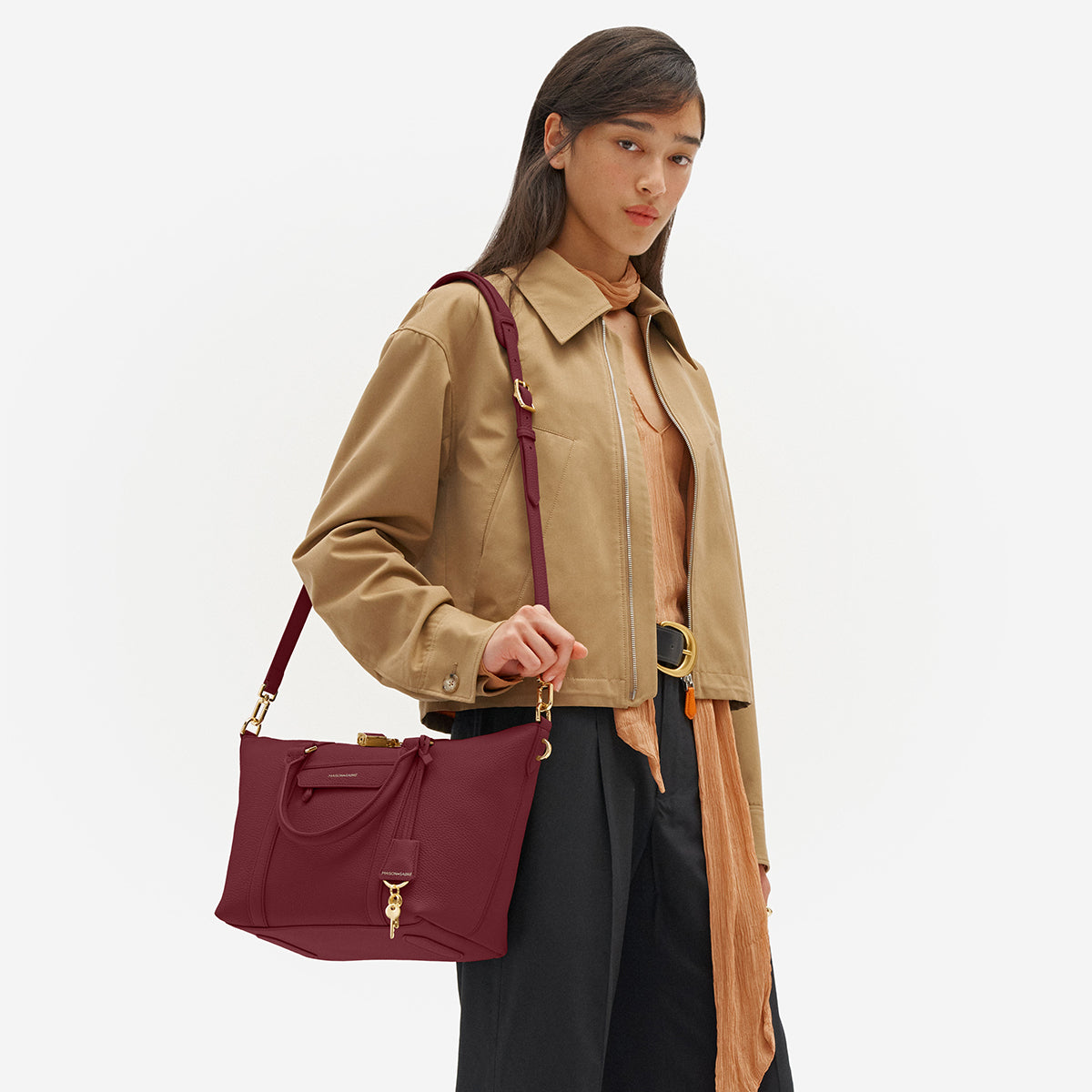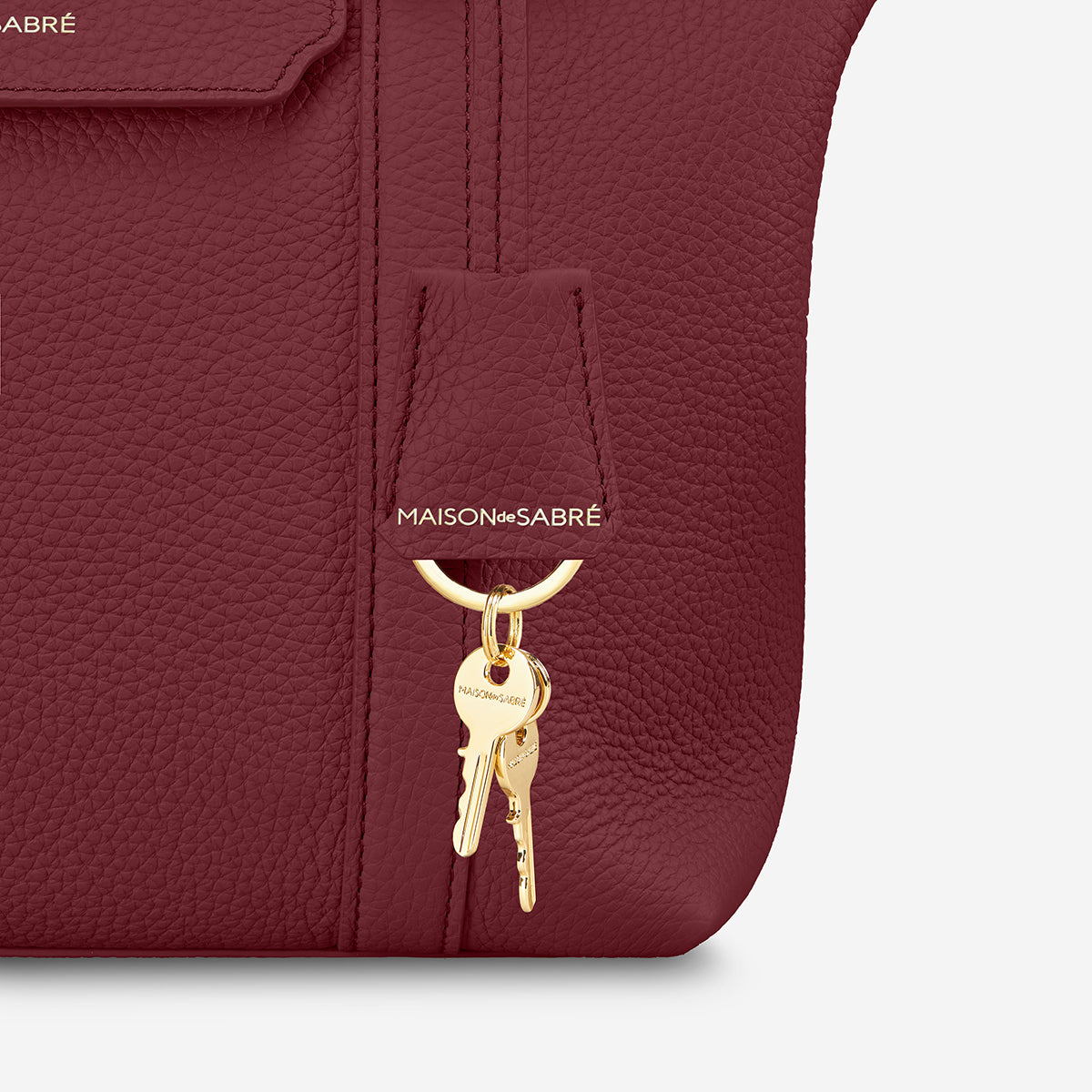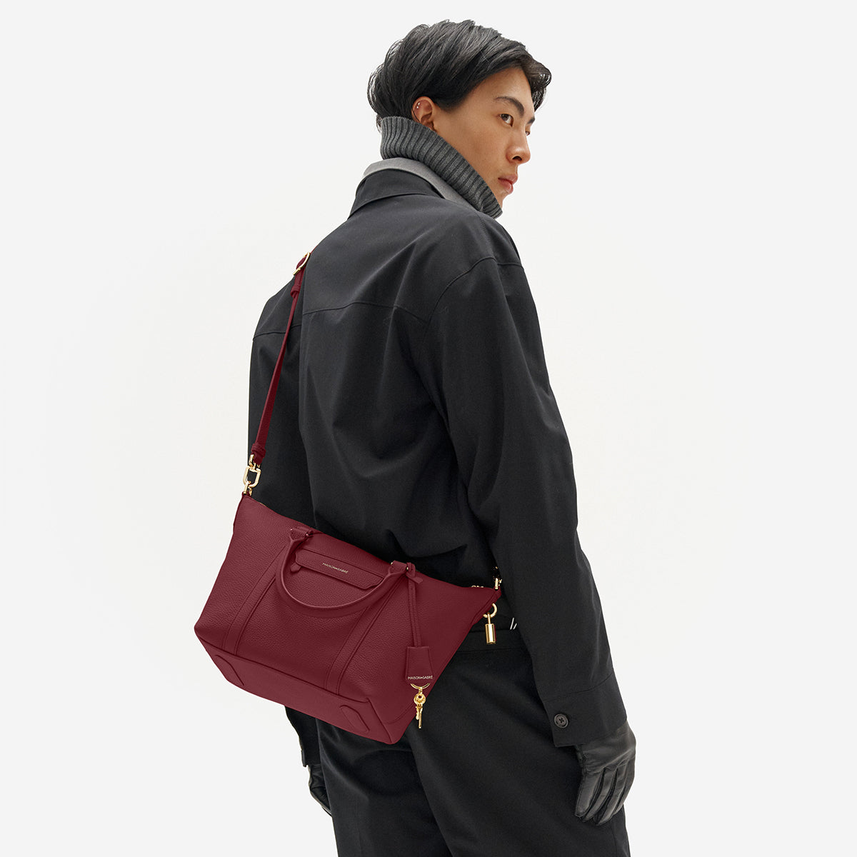 柔らかなフルグレインレザーを贅沢に纏ったコンパクトなトラベルトート。人気を誇るトラベルトートのデザインを受け継ぎ、さらに充実した収納力と快適な使い心地、安全性を備えて登場。クッションのように体に寄り添う台形のシルエットは、パッド入りショルダーパッドと調節可能なレザーストラップで快適な持ち運びを実現。新たに採用したMAISON de SABRÉのシグネチャーロックとダブルジッパーが大切な荷物をしっかりと守るセキュリティ、内部は広々としたスペースに四つのポケットを備え、外側には携帯電話や旅の必需品をすぐに取り出せるスリップポケットを配置。