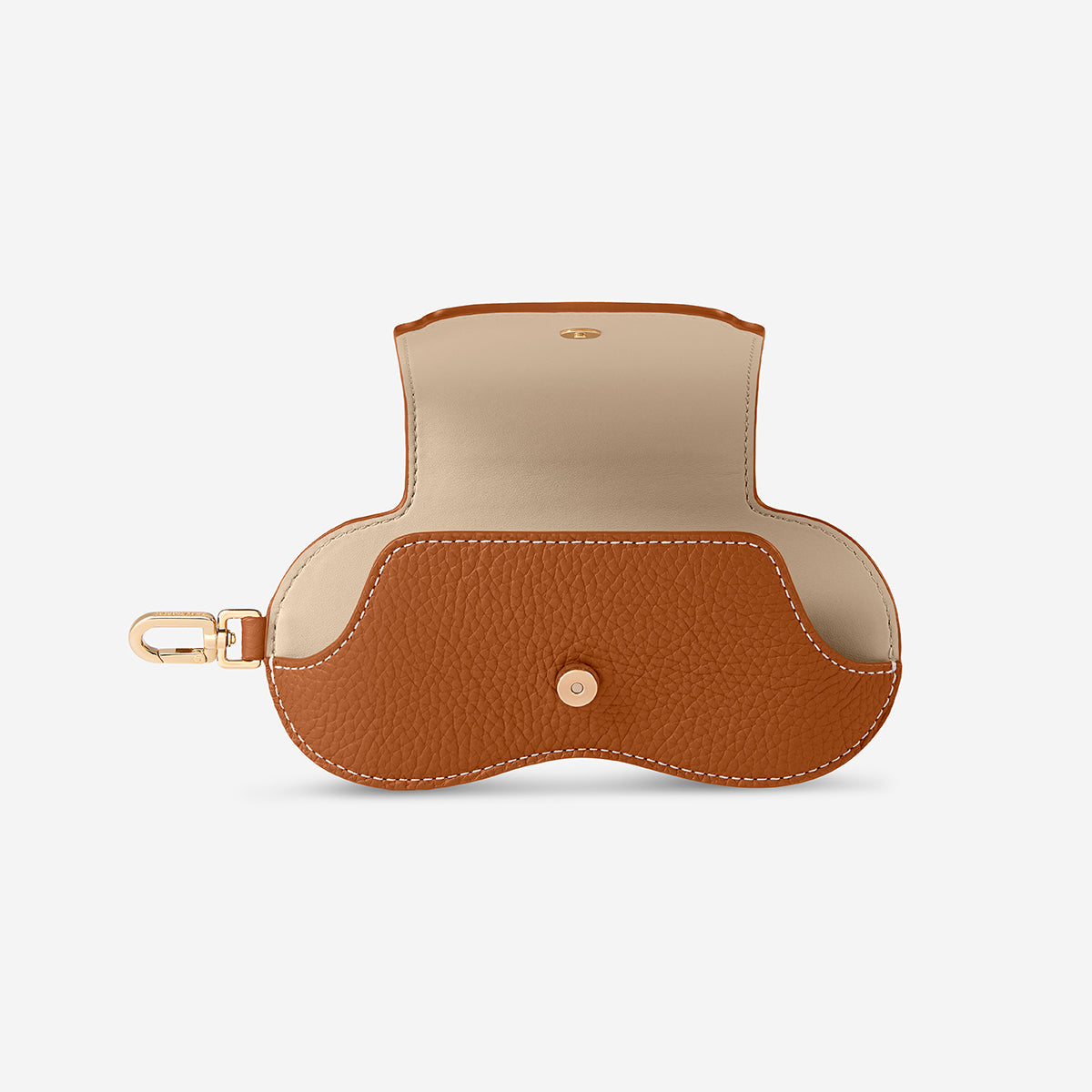 アイウェアを優しく包み込む、極めてスリムなフォルム。 手のひらの形に沿ったSabréカーブをあしらったマグネットフラップが、さまざまな形状やサイズのアイウェアをしっかり収納。